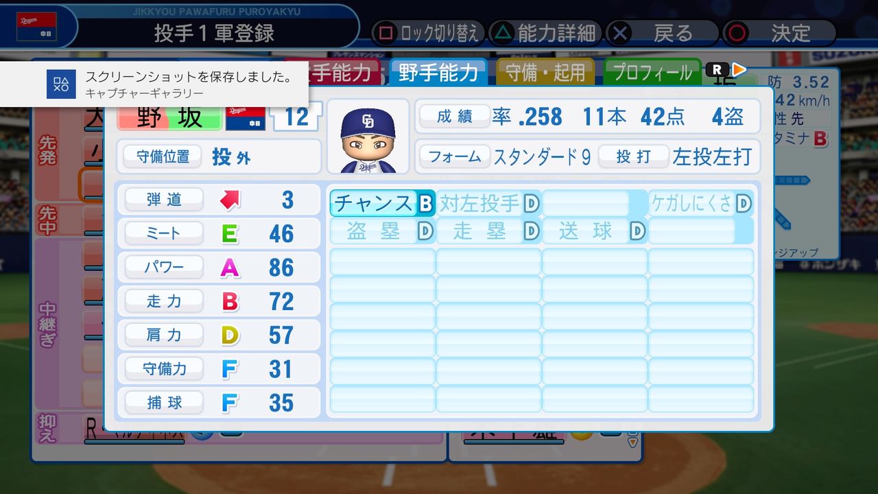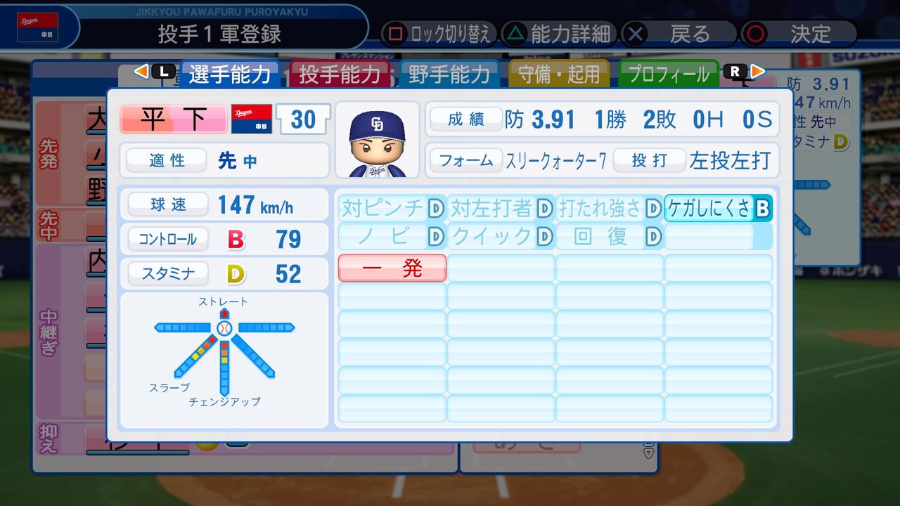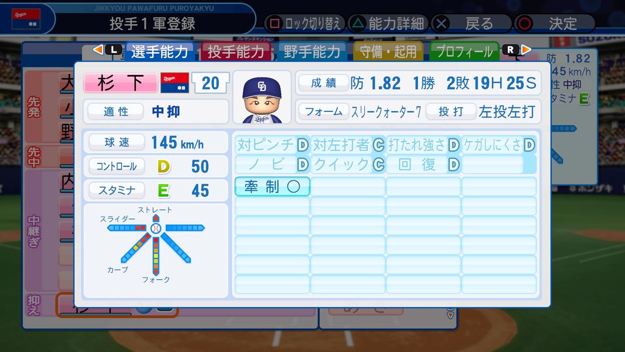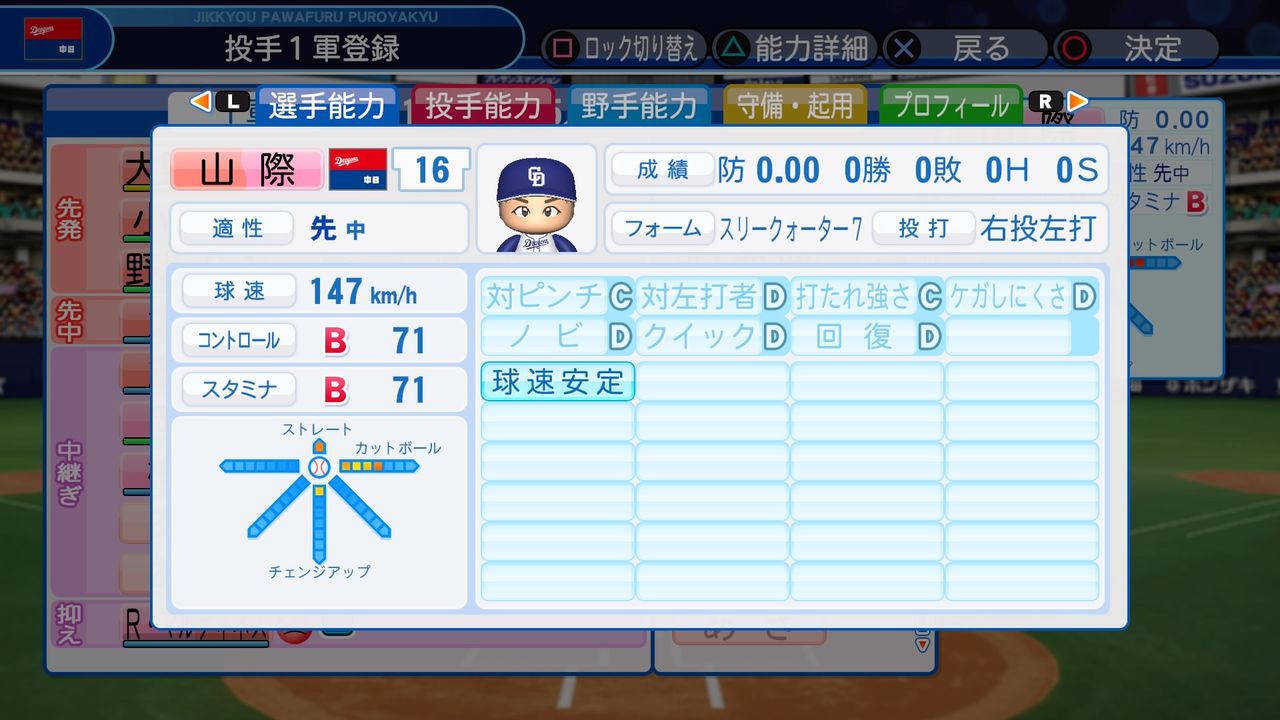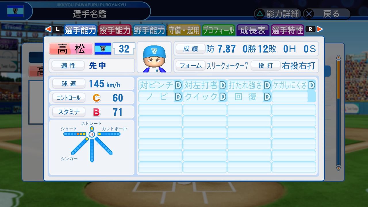 能力画面取れなかったけどコントロールが145キロでコントロールCくらいあった