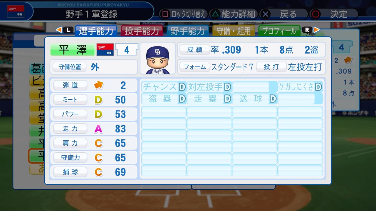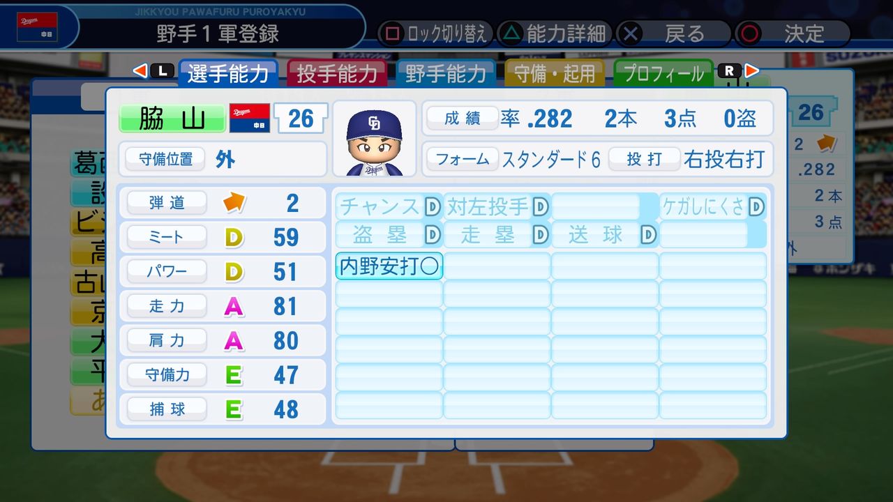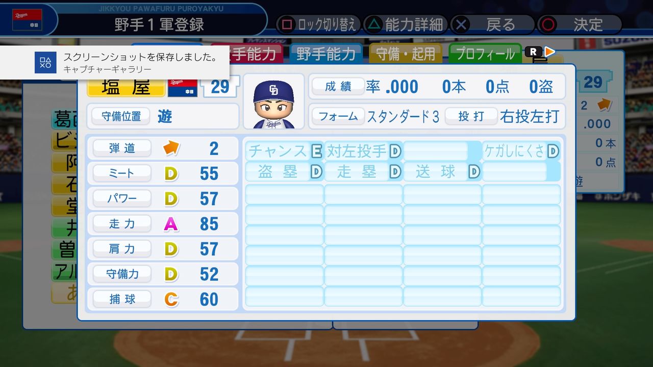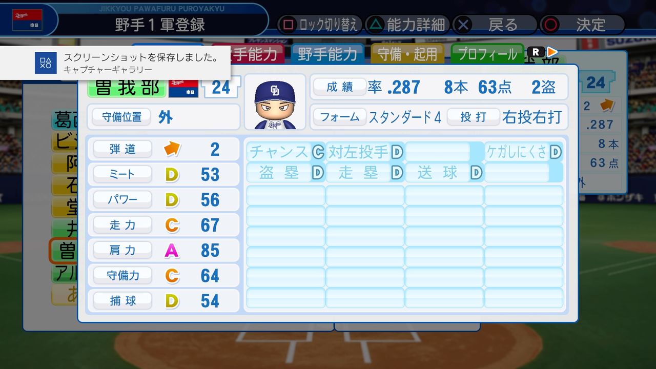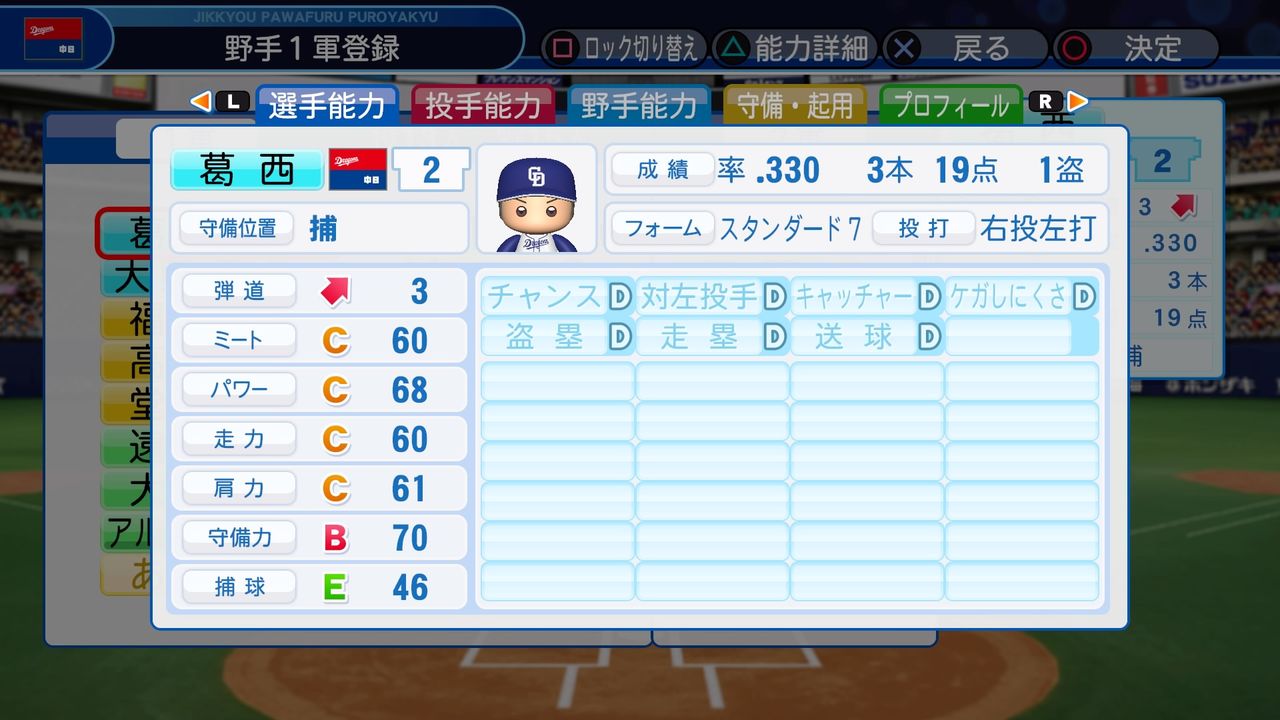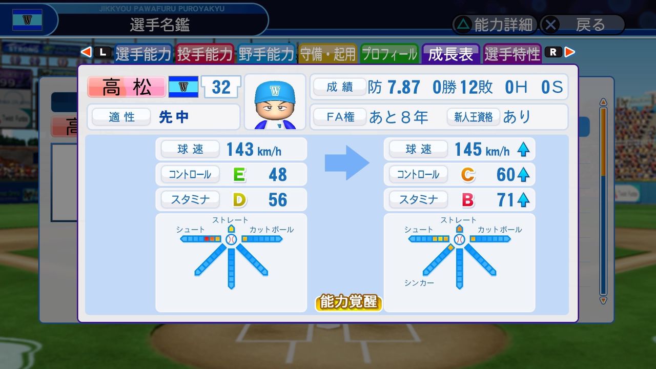 能力画面取れなかったけどコントロールが145キロでコントロールCくらいあった