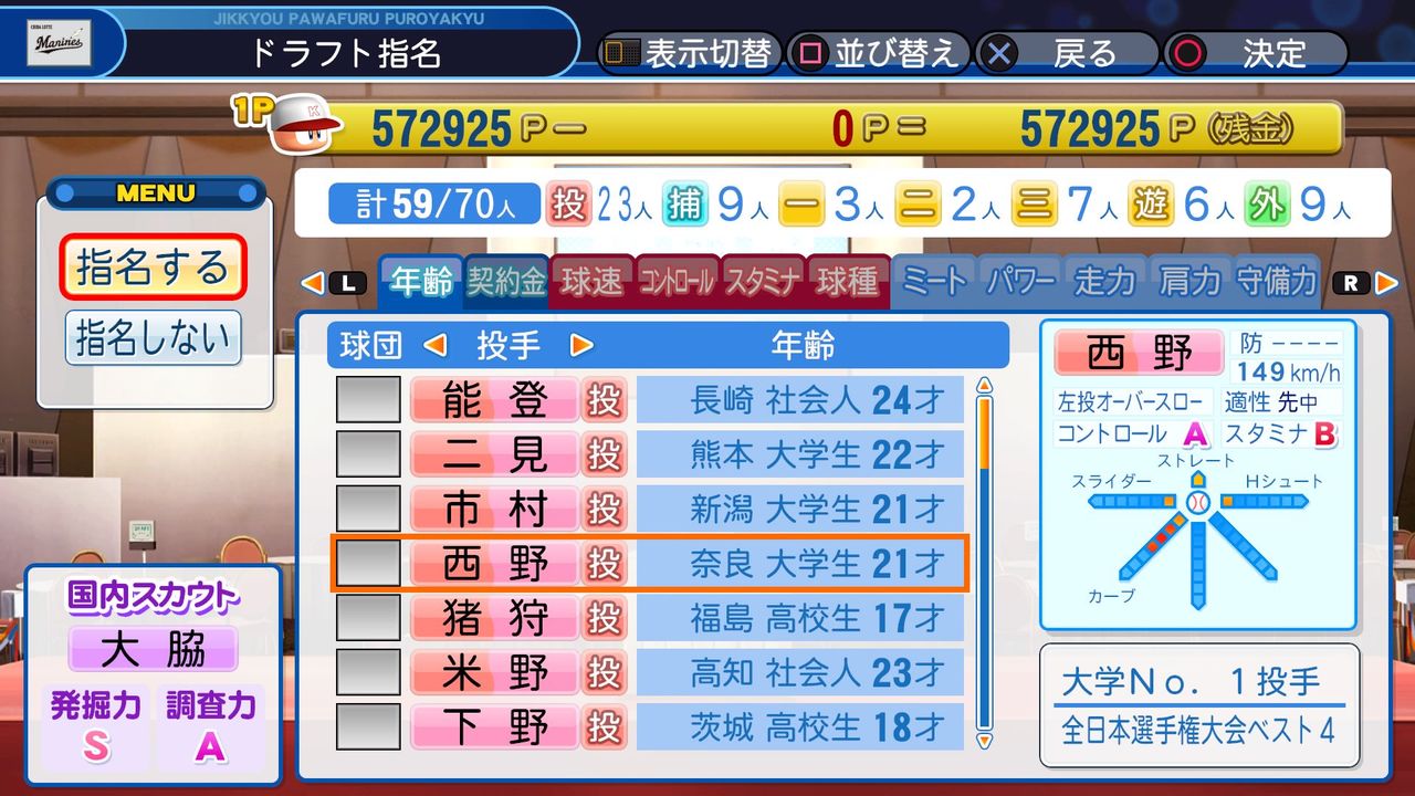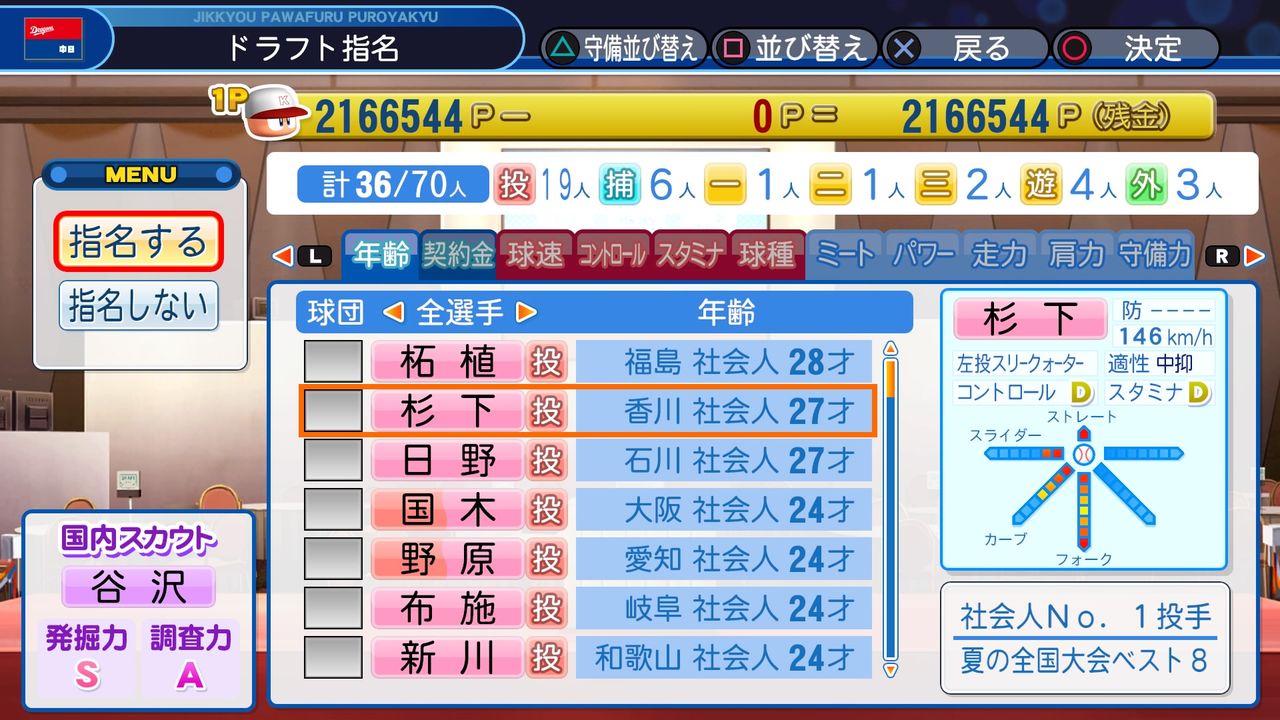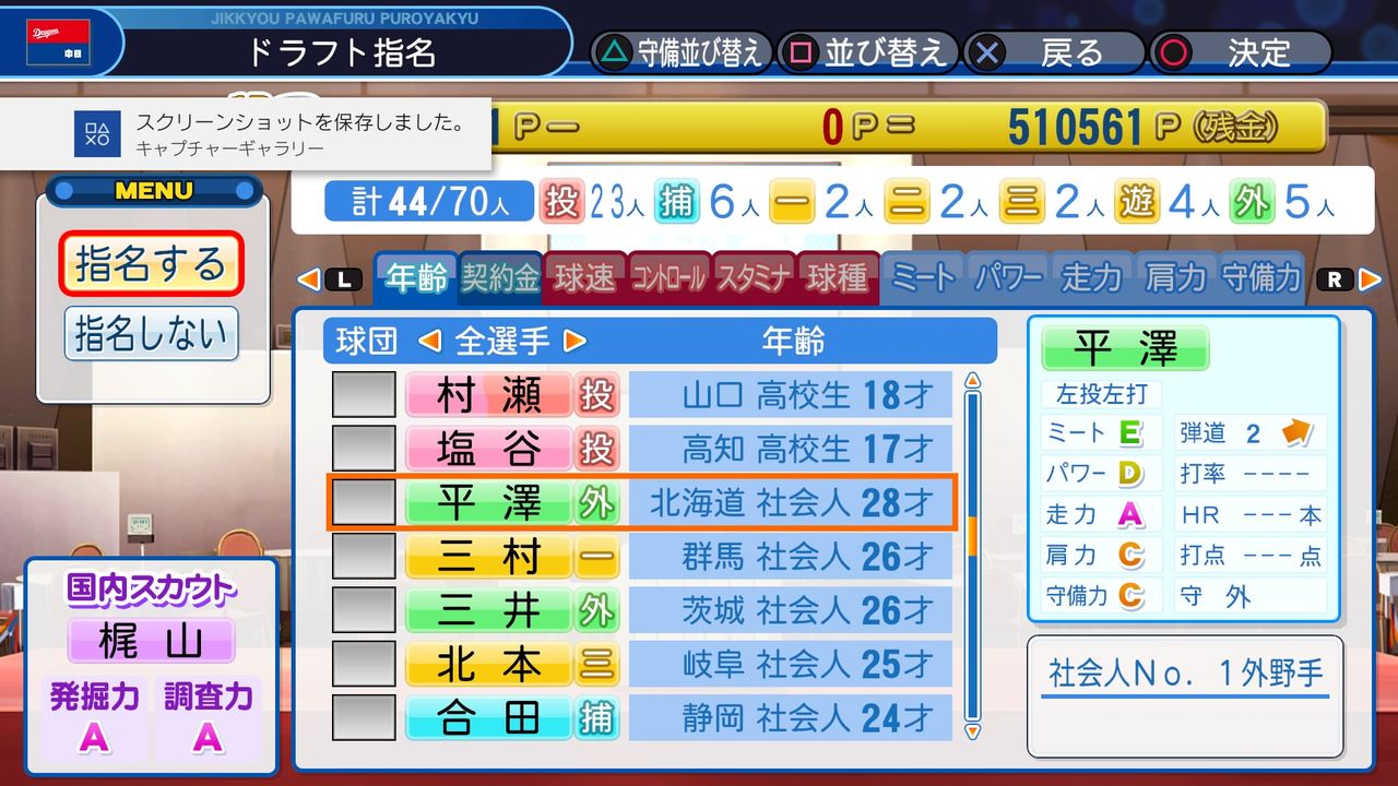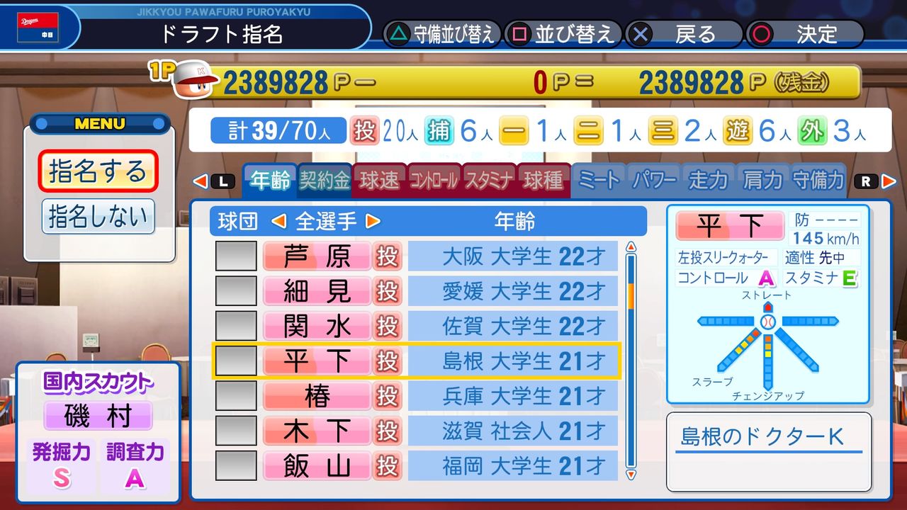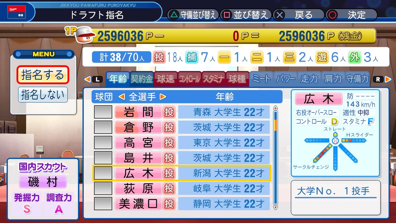 能力画面取れなかったけどコントロールが145キロでコントロールCくらいあった